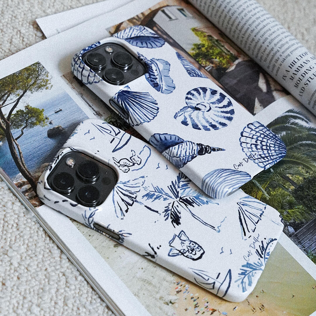 Balmy blue for those forever dreaming of summer, this is the right phone case for you. This hand illustrated design by Cass Deller will bring the sunnier season to your tech. We simply love the palm trees, fruit and sailboat motifs. Discover this phone cover for your iPhone, Samsung Galaxy or Google Pixel phone.
