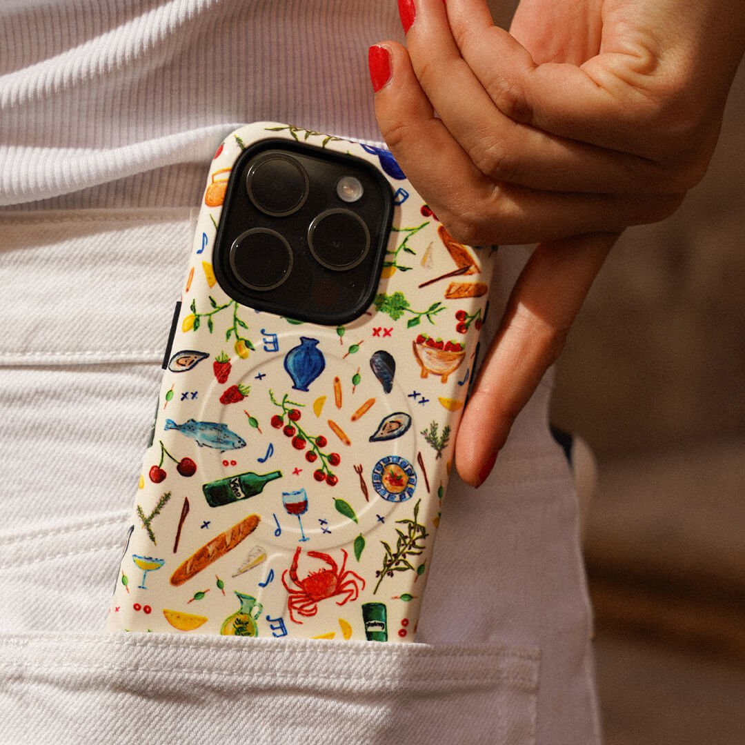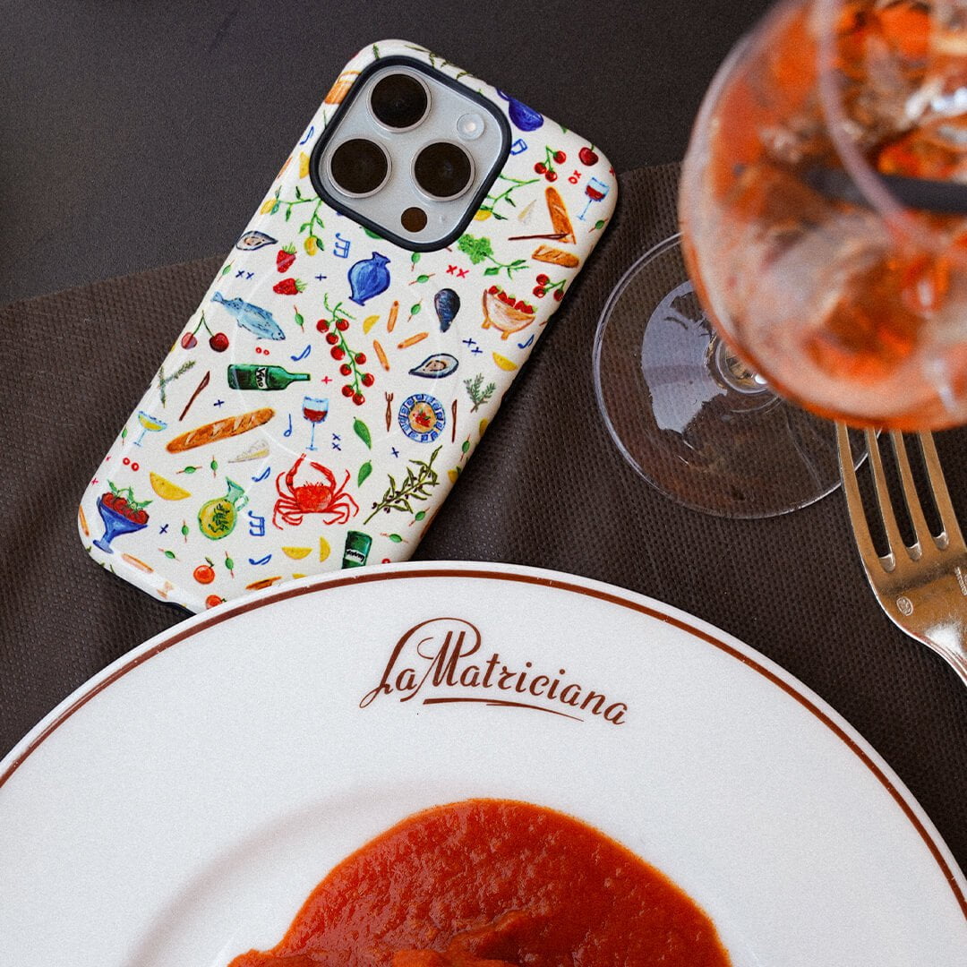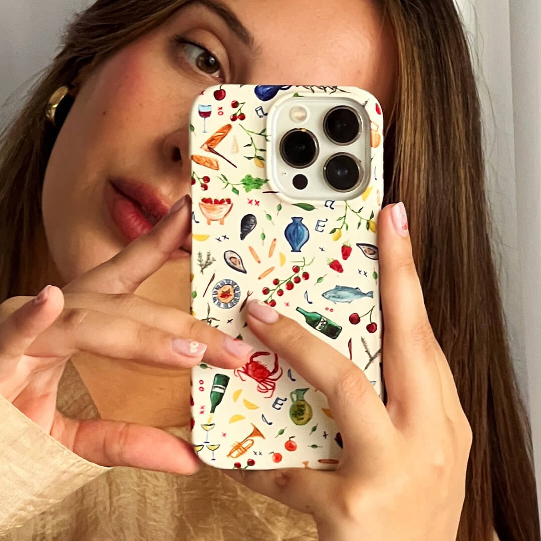 Embrace your individuality with one of our unique cases and discover the dolce vita with colourful illustrations, who doesn't love a little vino, cherry, baguette, oyster, lemon, pasta, tomatoes, and Prosseco to top? Discover our two styles, ultra-thin snap, and protective 2-piece armoured case. Free Shipping. We got you covered with cute & protective cases.