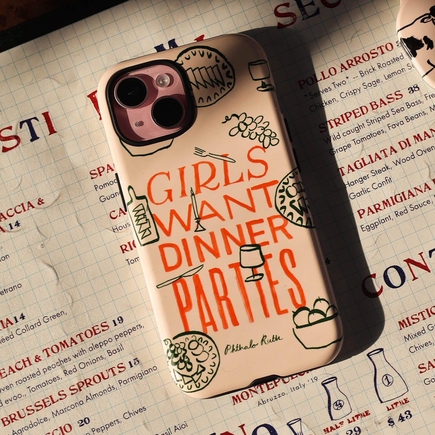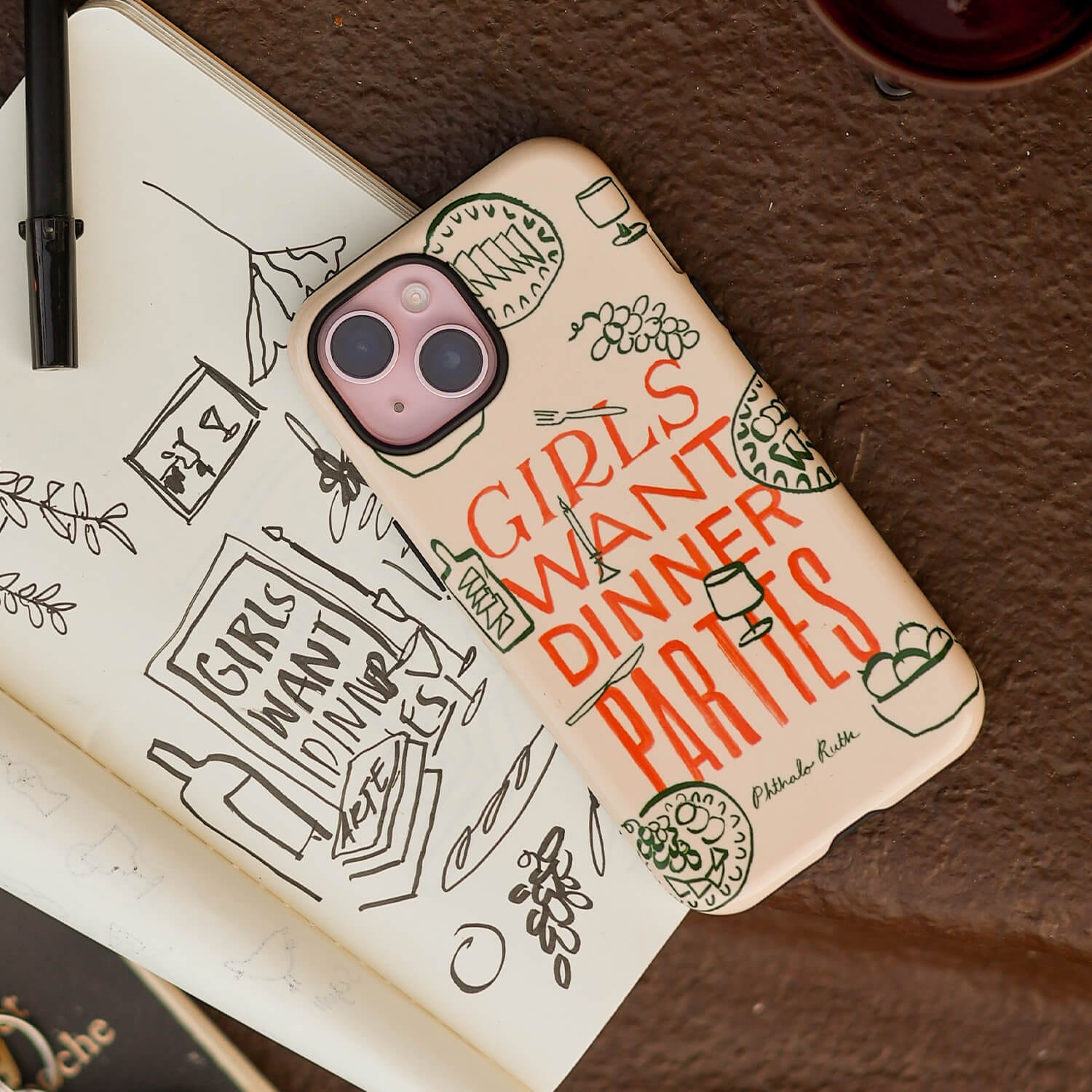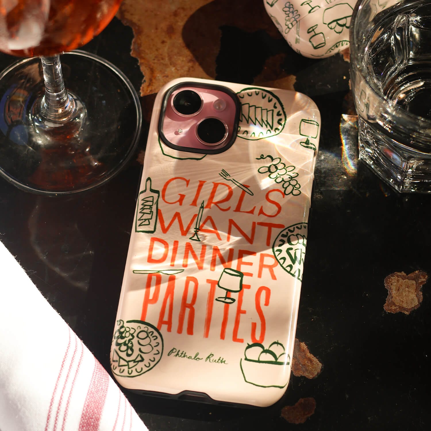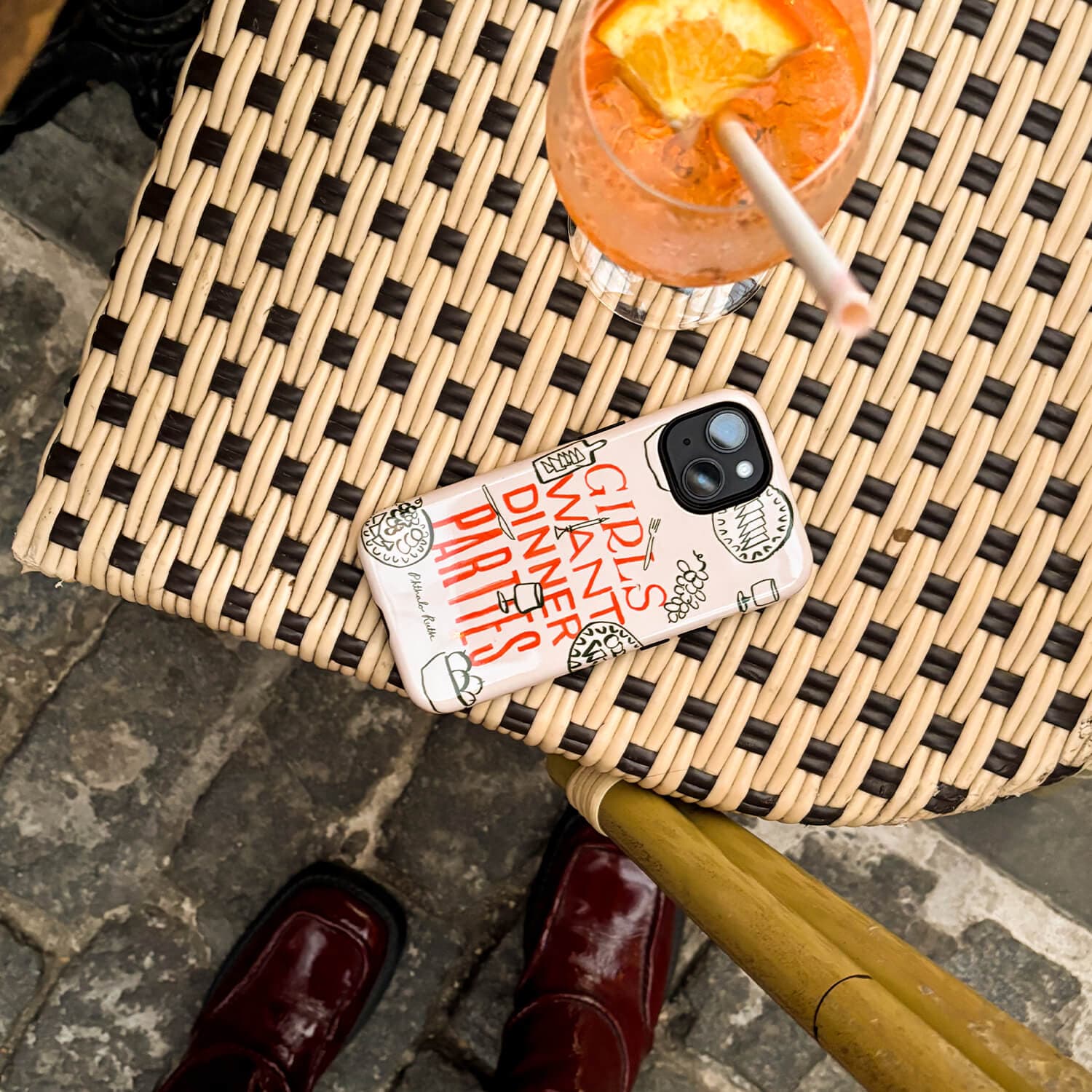 Meet your new favourite dinner guest, our Dinner Parties phone case by Phthalo Ruth. This one’s for the girlies who prefer place cards over party apps and believe in carbs, candles, and chaotic conversation. Featuring hand-illustrated dinner party motifs and the gloriously unapologetic phrase “girls just wanna have dinner parties” splashed right across the top, this phone case is a love letter to the art of gathering.