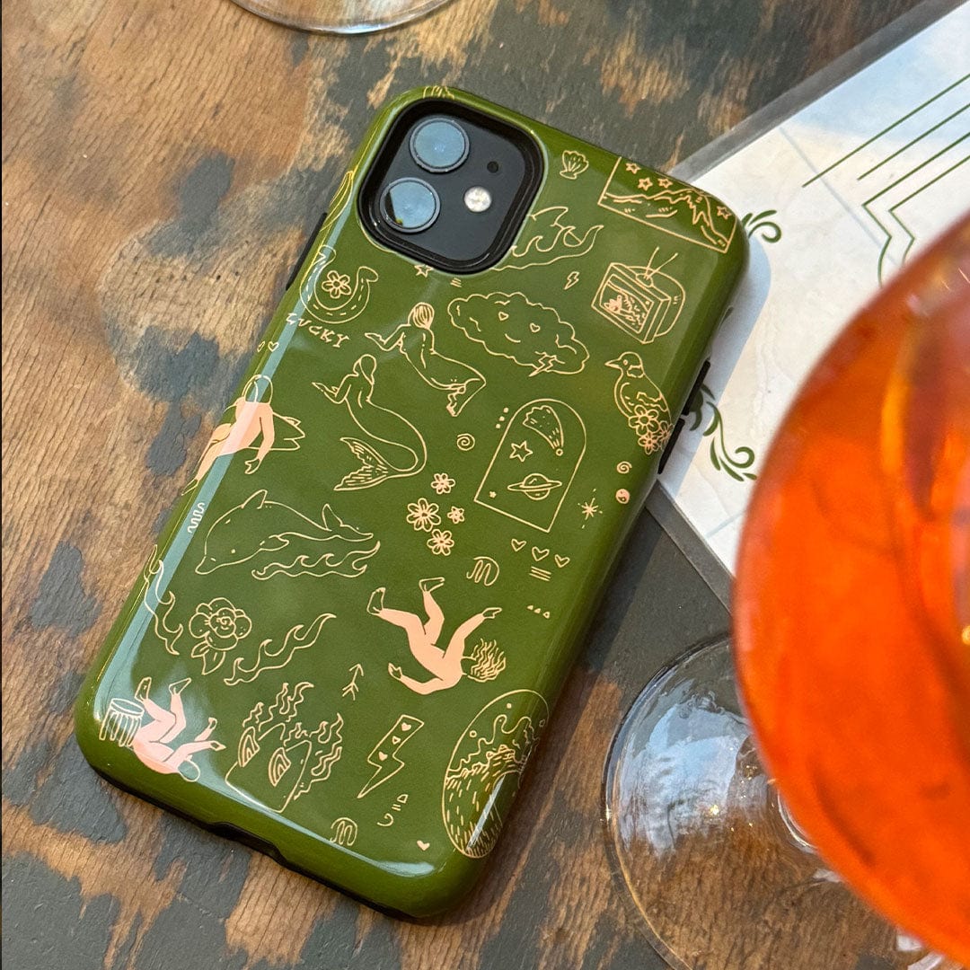 Give your phone a bold new look with this flash tattoo-inspired phone case, featuring Easty’s favourite flash designs in a vibrant, eye-catching layout. This design comes in two unique colour palettes, including a standout deep green with a playful pop of pink, perfect for anyone who loves classic tattoo art with a twist. Whether you're all about bold accessories or just want your phone to turn heads, this case brings serious style with a side of attitude.