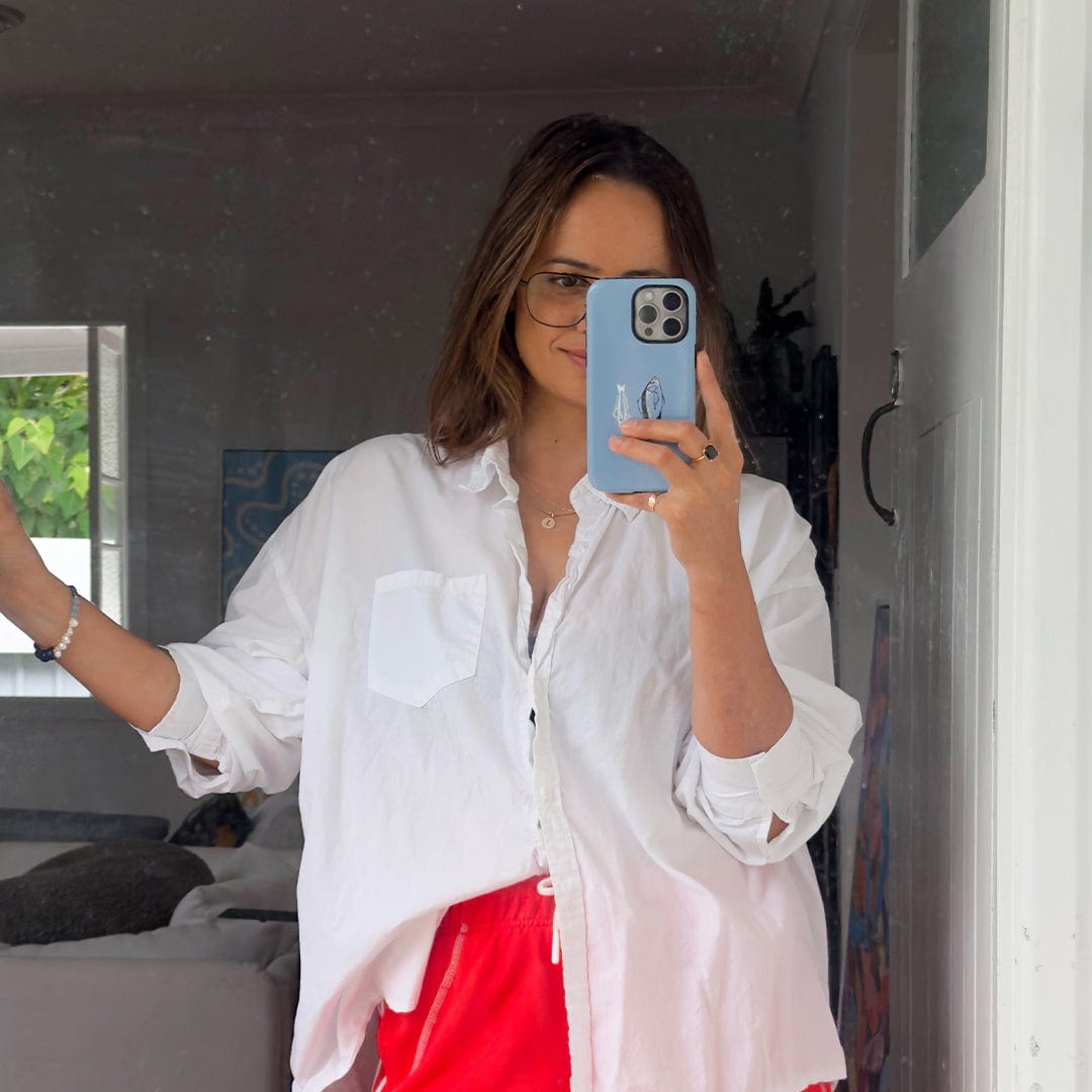 Celebrate family memories with the Fisherman phone case by artist Ryhia. This light blue case features two beautifully illustrated fish – whiting and snapper – inspired by the ones her dad caught while growing up in Palm Beach. Crafted for durability and lightweight protection, this phone case not only safeguards your device but also tells a personal, meaningful story. Perfect for art lovers, the Fisherman case blends nature, nostalgia, and style into a functional accessory.