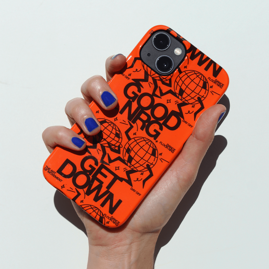 Enter your rave era. The Good Energy Case embraces high vibrations and good energy, taking inspiration from house rave posters of the 90s. Everyone deserves a little boogie on their day off, now captured forever on your phone. Safety orange can be spotted from a mile away, so you’ll never lose your phone on the dance floor again.