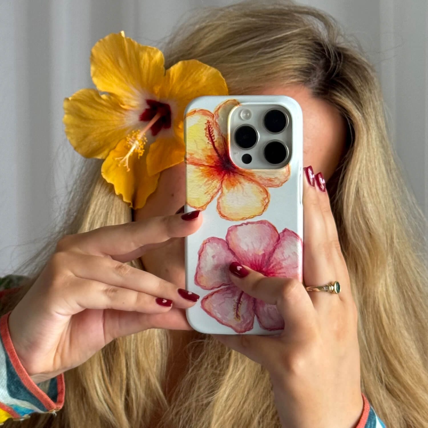 What shouts 'summer vibes' louder than vibrant yellow & rosy pink hibiscus blooms, resting upon a lovely blue that brings to mind coastal vibes? We think this cute & protective phone case is the ideal accessory for your iPhone, Samsung Galaxy, or Google Pixel phone!
