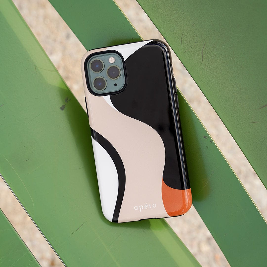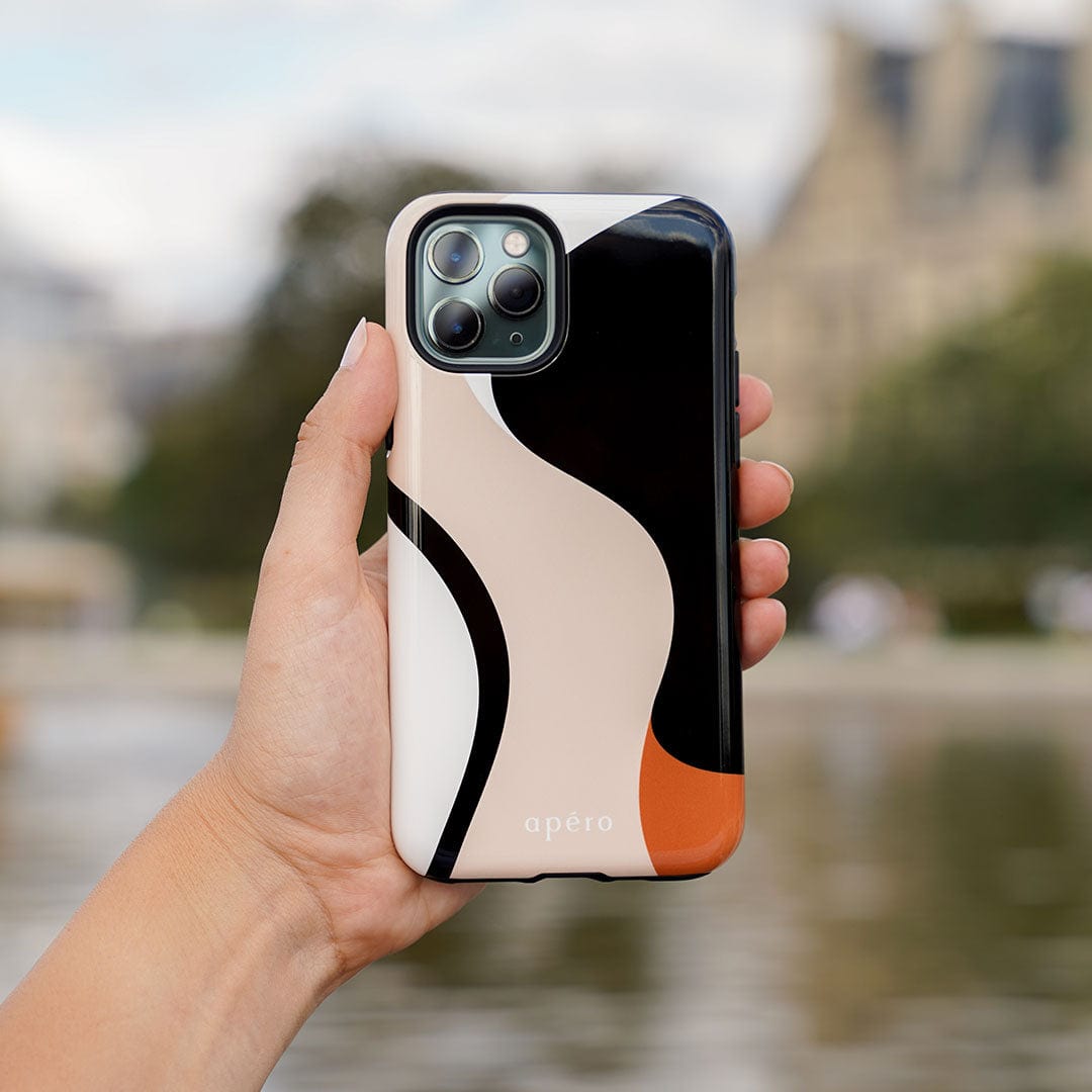 Ingela is a multi-abstract pattern design phone case in black, tan, and beige. In collaboration with our friends at Apero, their designs are inspired by fashion, classic simplicity, and bright detailing. Available for iPhone, Samsung Galaxy, and Google Pixel phones. MagSafe option for iPhone 16, 15, 14 & 13 range. We use a patented 3D printing process to embed this design into the layers of the tough plastic polycarbonate case. We also have a choice of either protective Armoured casing or slim, lightweight Snap, depending on how hard-wearing you need your case to be.