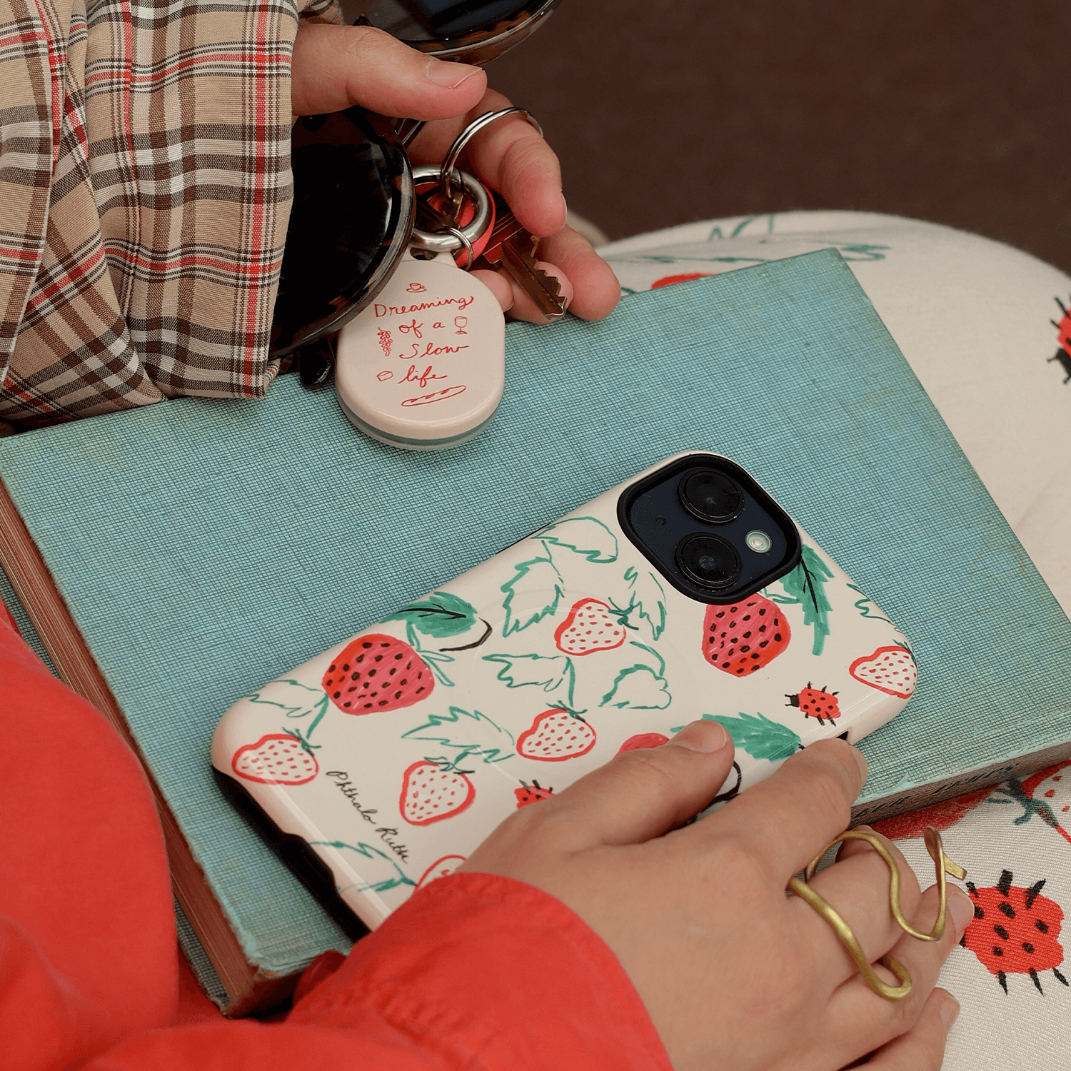 This cute phone case transports you to a delightful English cottage, to enjoy an afternoon tea surrounded by ladybugs crawling on vines of perfectly ripe strawberries. Sweetly drawn berries and ladybugs make for the cutest design, bringing that summery feeling any time of year.