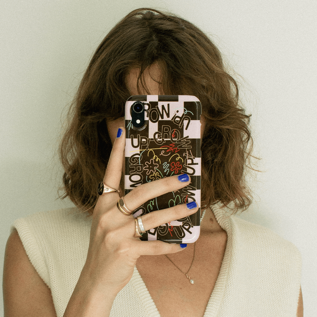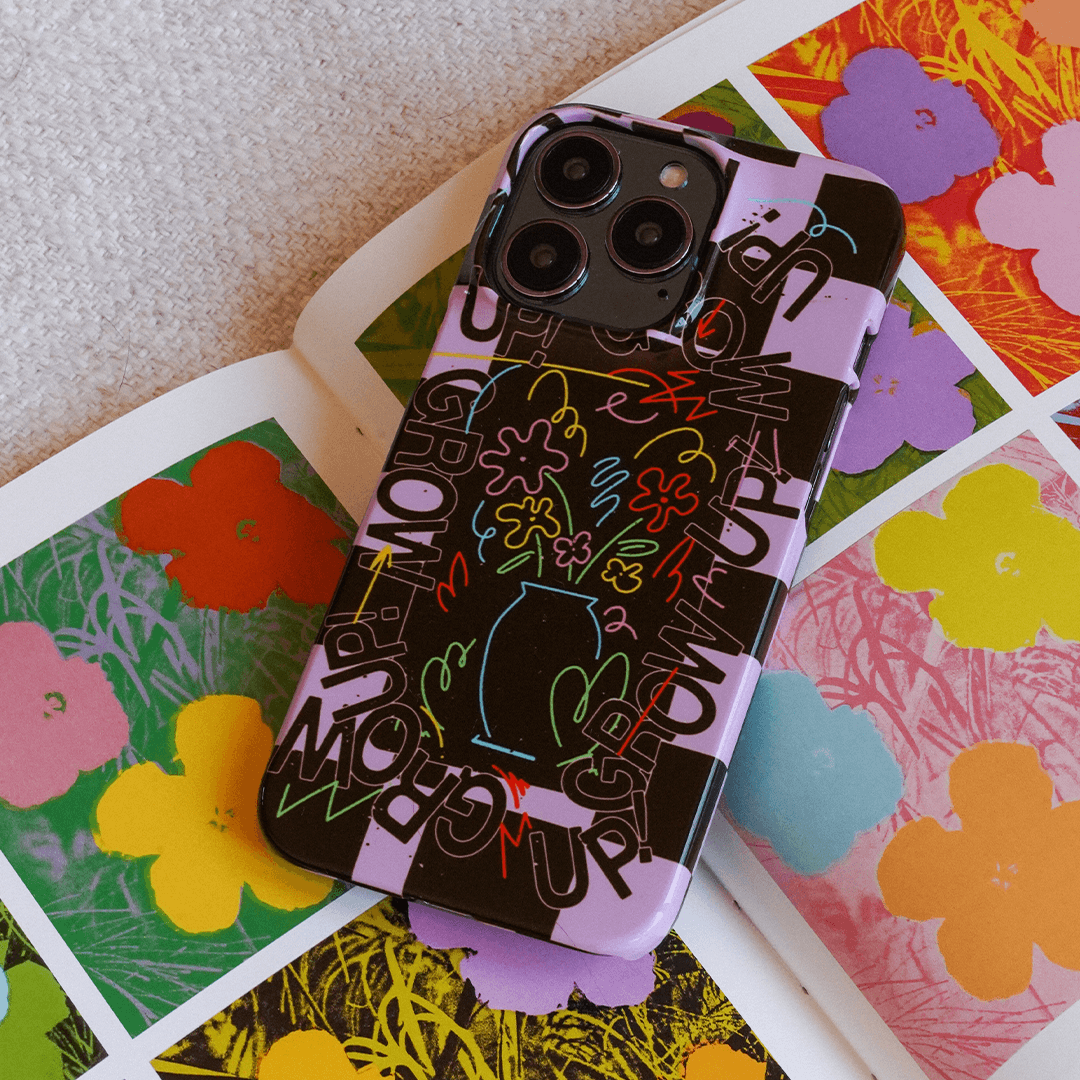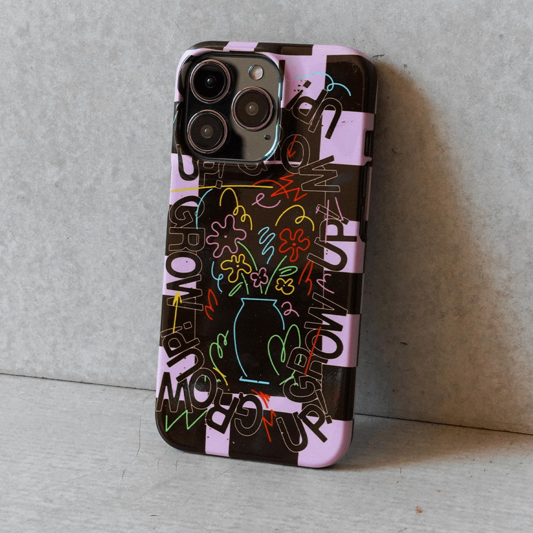 Intrusive thoughts win today. The Mindful Mess phone case is one if you’re having an off day. Don’t worry, you can try again tomorrow. Even flowers have to grow up. If all else fails, a checkered pink and brown background and a vase of flowers will cheer you up. Printed with a gloss high-quality finish this purple and deep brown case will be a standout for your iPhone, Samsung Galaxy, or Google Pixel phone.