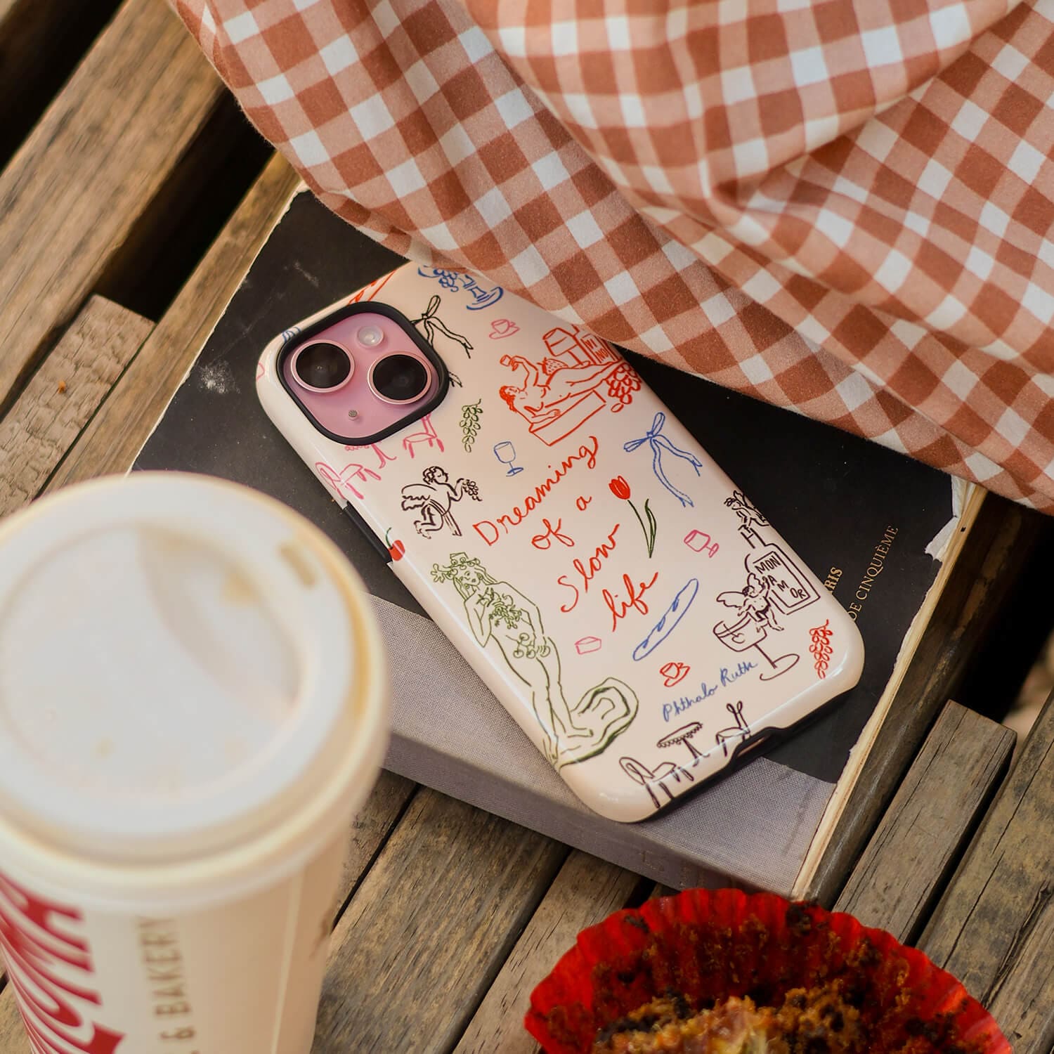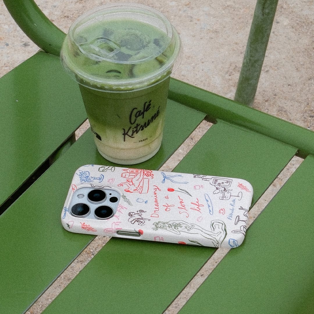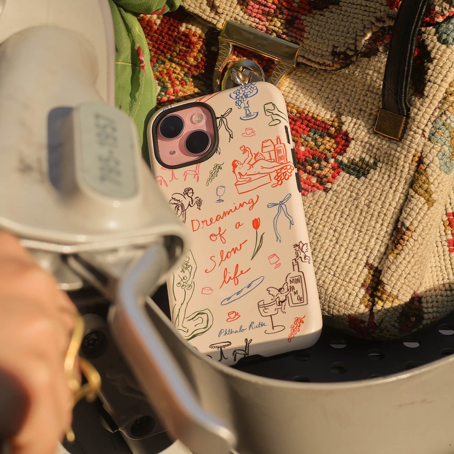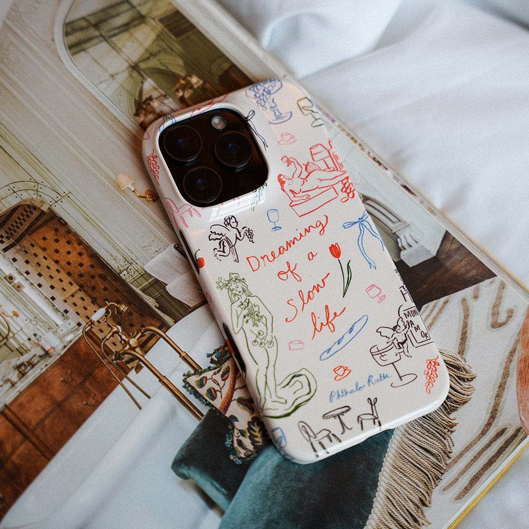 Oh, to be a carefree nymph lounging about, surrounded by abundant fruit, cheese, and wine. The 'Muse Dreams' phone case celebrates just that, inspiring you to invite more leisure and little luxuries into your daily life, more time for relaxing, savouring good food, and enjoying a glass of wine.