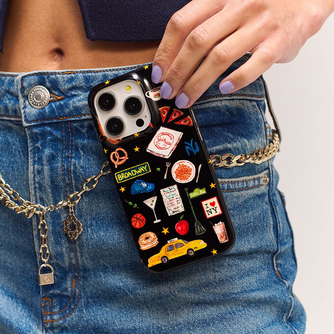 Get the NYC vibe on your phone with this illustrated phone case by BG Studio. Featuring all things we love about the city - pizza, pretzels, cup of joe, and more. Bring some Big Apple flair to your phone and show off your love for NYC.