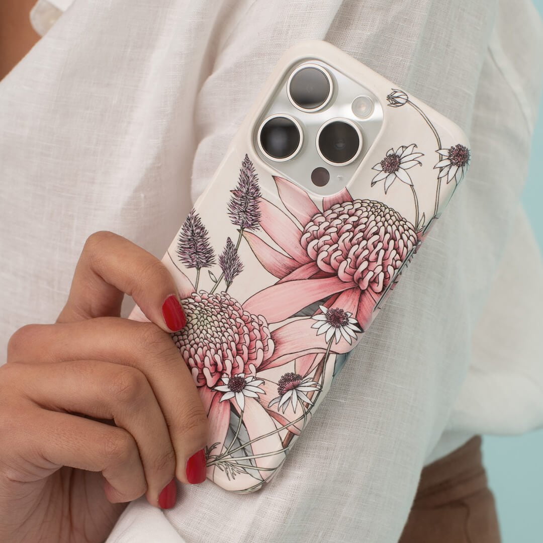 Brighten up your phone with this Pink Waratah phone case. With its hand-drawn floral design and vintage-inspired colour palette, you'll love the look and feel of this stylish case. Not to mention the protection it offers, in both Snap and Armoured styles, for a variety of iPhone, Samsung Galaxy, and Google Pixel models. Make a statement with this gorgeous phone case.