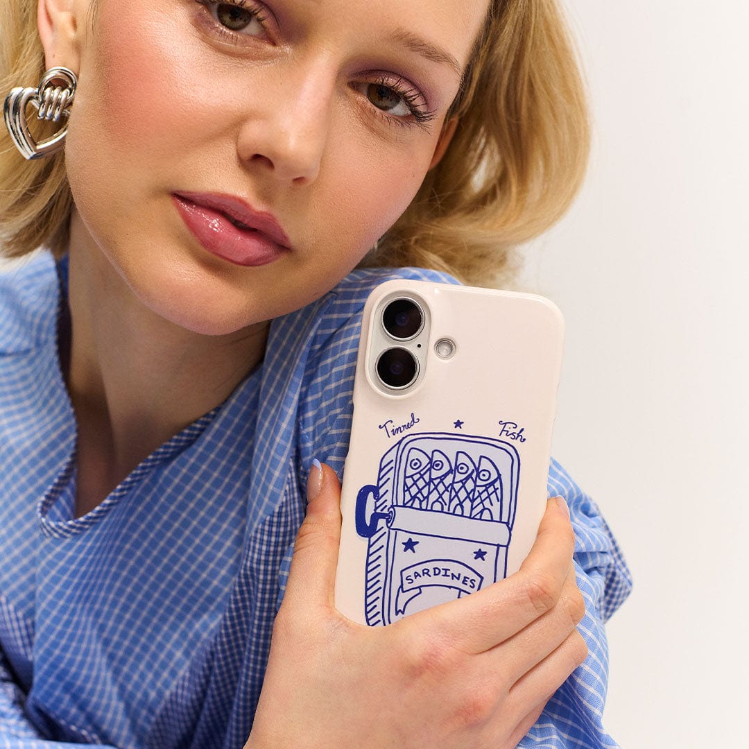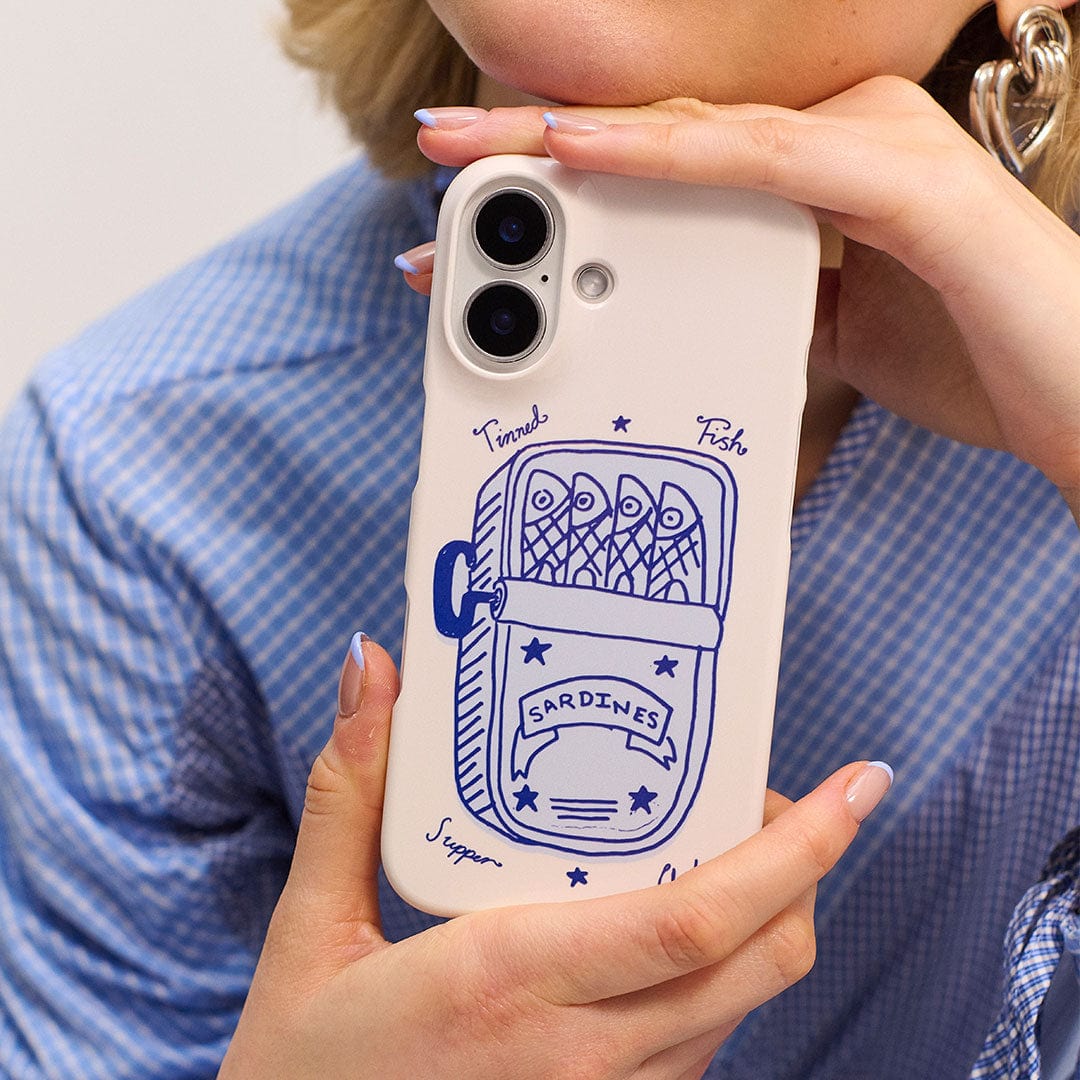 Say hello to the Sardine Social phone case, a quirky design inspired by retro charm. Featuring blue illustrated sardine cans on a creamy backdrop, this case is perfect for vintage lovers. Its playful, nostalgic vibe brings a splash of fun to your tech, adding a dash of character that stands out in any setting.