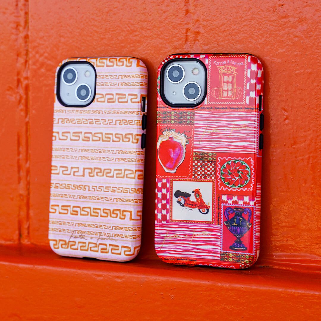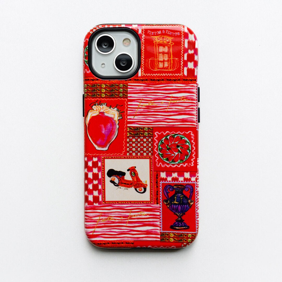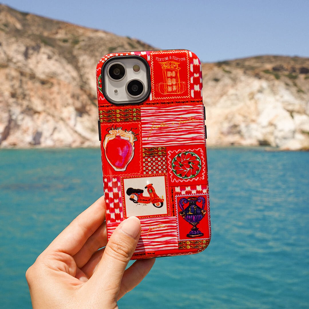 Vacay vibes radiate from Fenton & Fenton's 'Sicilia' Sicilian scooter phone case - embodying colours, places, and culture that inspire their journey. Part of the LIFE IN COLOUR collection, the bold design transports everyday life to distant destinations, paying homage to the brand's origins, sense of adventure, and the spirit of a life less ordinary. It encapsulates the vibrant aesthetic defining Fenton & Fenton.