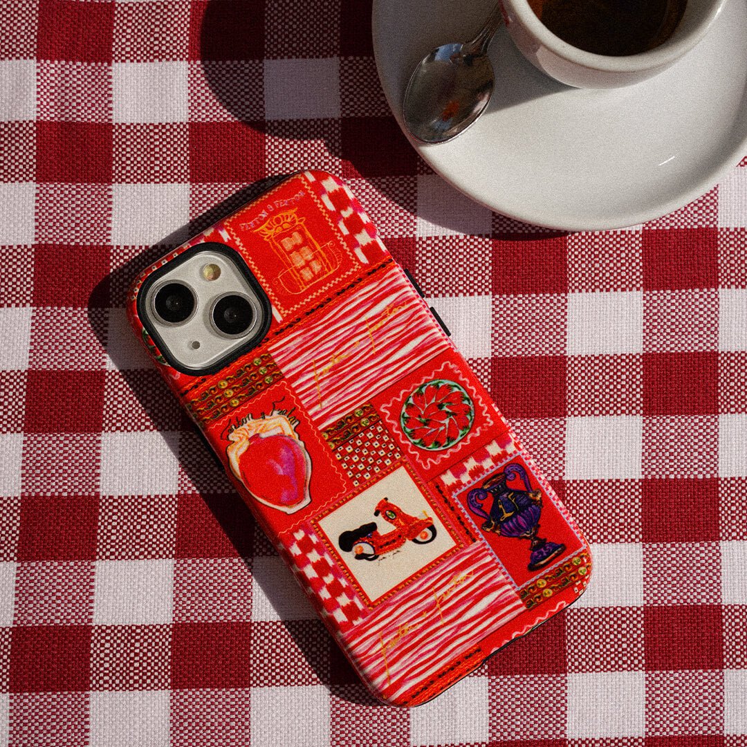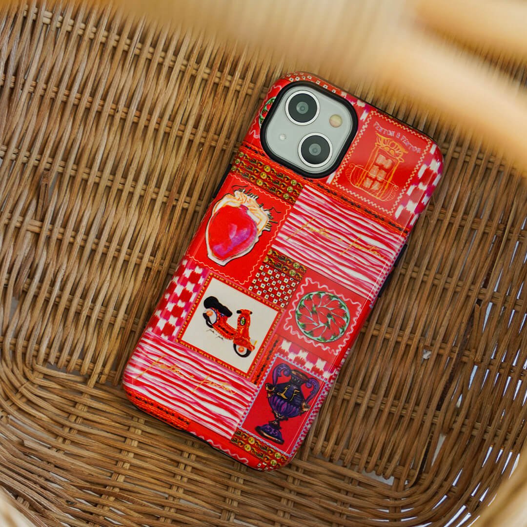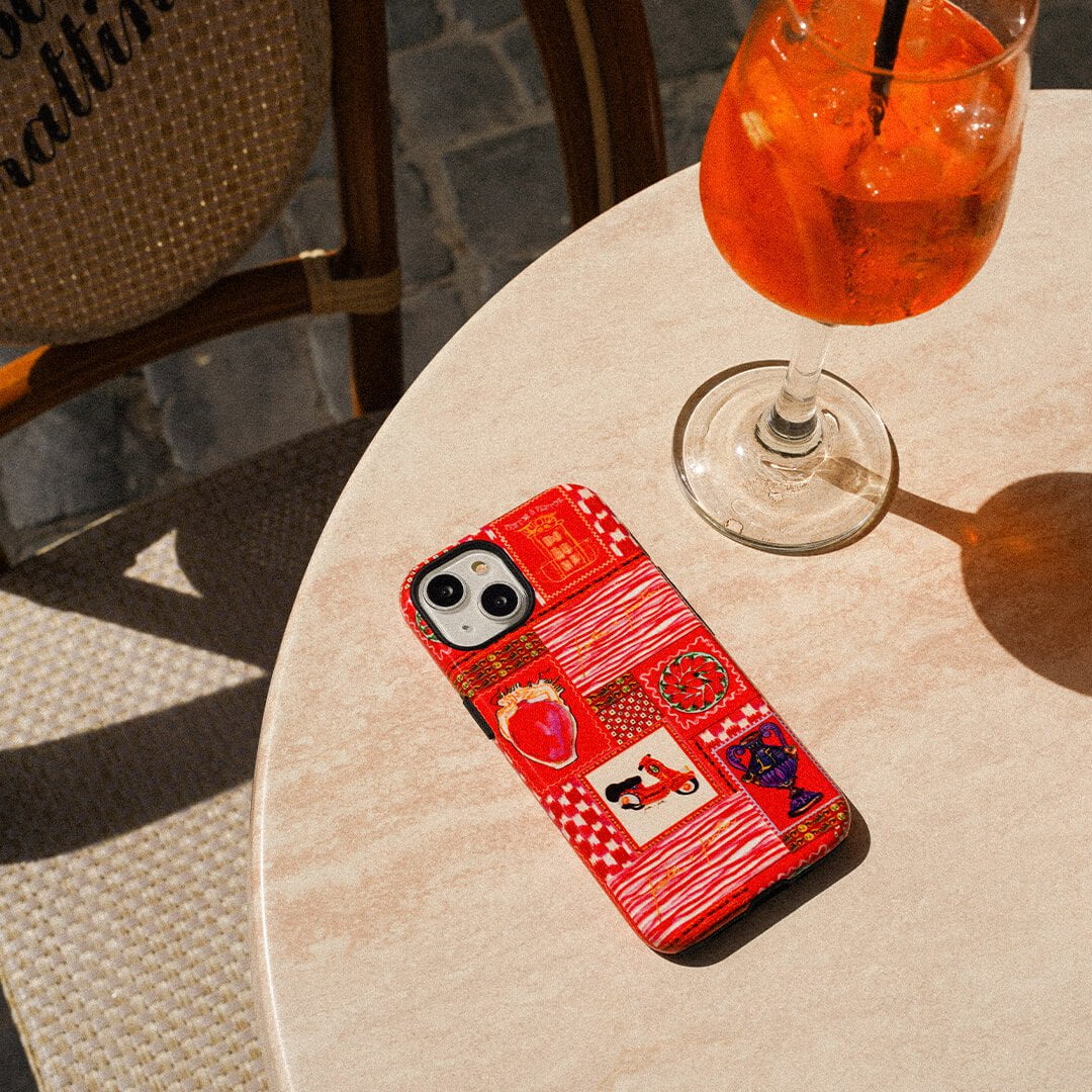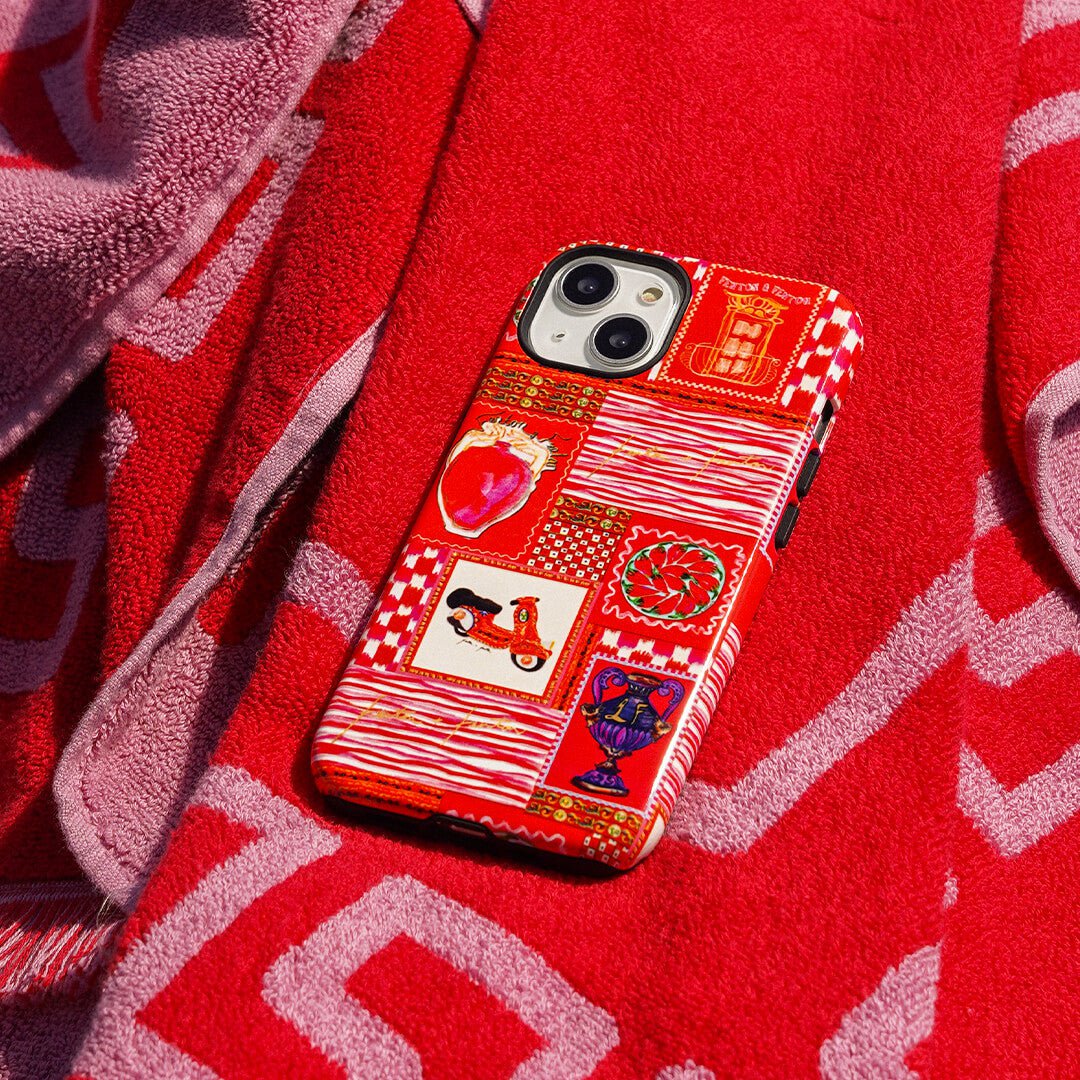 Vacay vibes radiate from Fenton & Fenton's 'Sicilia' Sicilian scooter phone case - embodying colours, places, and culture that inspire their journey. Part of the LIFE IN COLOUR collection, the bold design transports everyday life to distant destinations, paying homage to the brand's origins, sense of adventure, and the spirit of a life less ordinary. It encapsulates the vibrant aesthetic defining Fenton & Fenton.