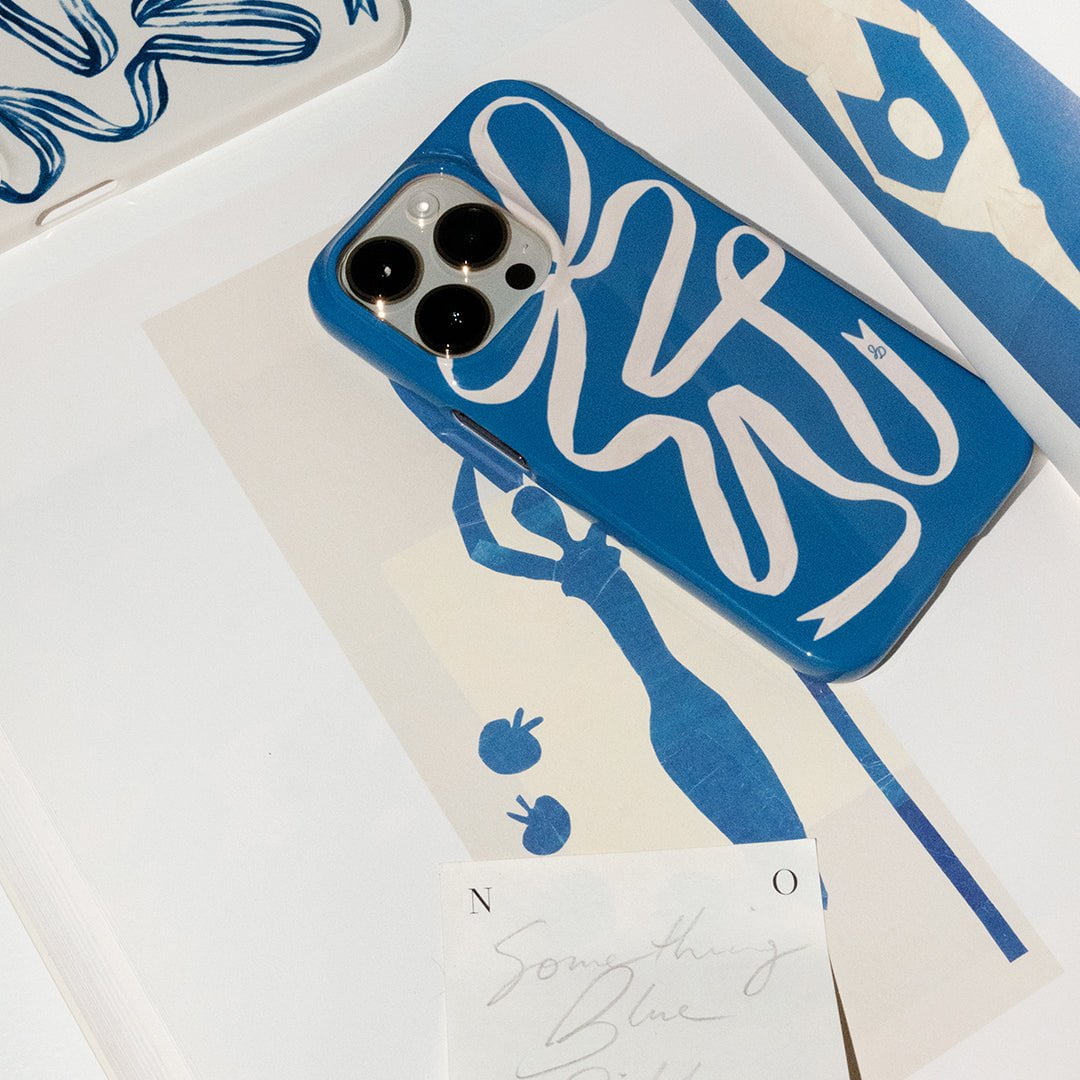 Introducing the ultimate blue bow phone case design, straight from the creative world of Jasmine Dowling. Featuring a whimsical ribbon design, this phone case is compatible with iPhone, Samsung Galaxy, and Google Pixel. Protective and cute, it's the perfect 'Something Blue' for any event.