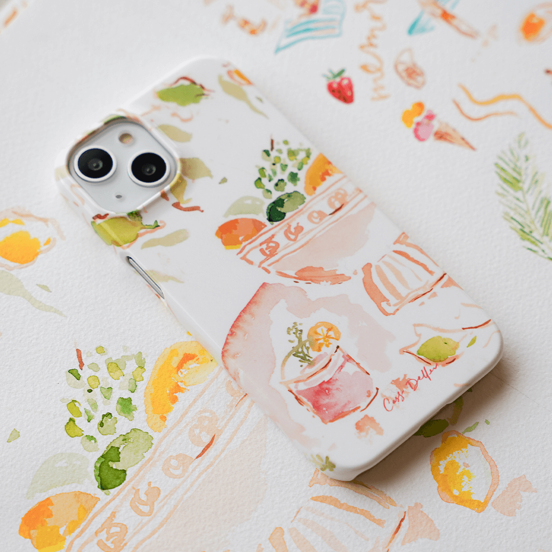 Craving an Amalfi coast adventure? Why not indulge in the Dolce Vita with the 'Sorrento' phone case by Cass Deller. Bursting with a refreshing drink and citrus fruits, this case will spark daydreams of a European getaway every time you glance at it.
