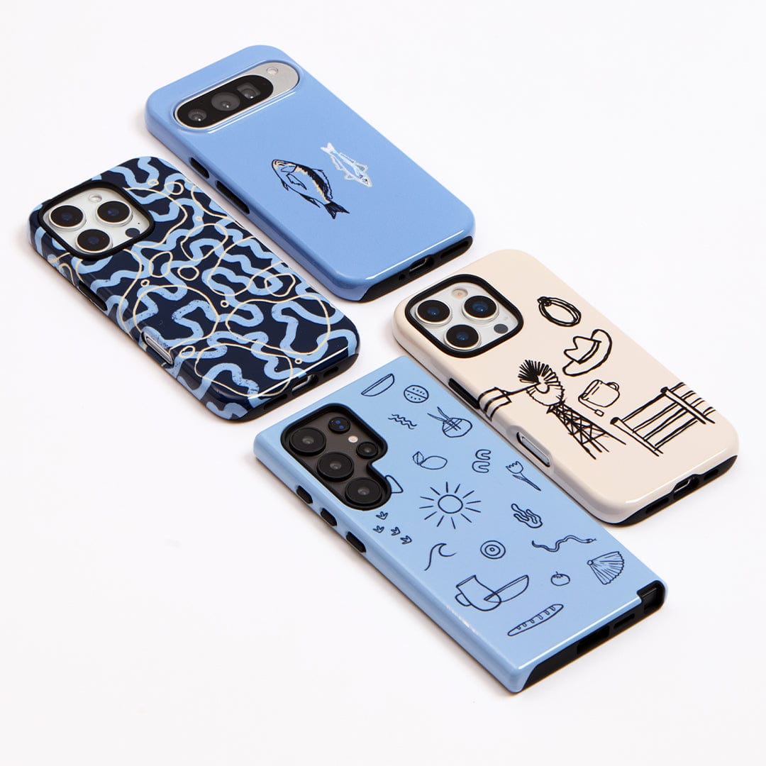 Celebrate the beauty of connection with this light blue phone case featuring unique illustrations by artist Ryhia. Adorned with various symbols and motifs, this design holds a heartfelt story, it represents the artist's parents, who come from different backgrounds yet complement each other perfectly.