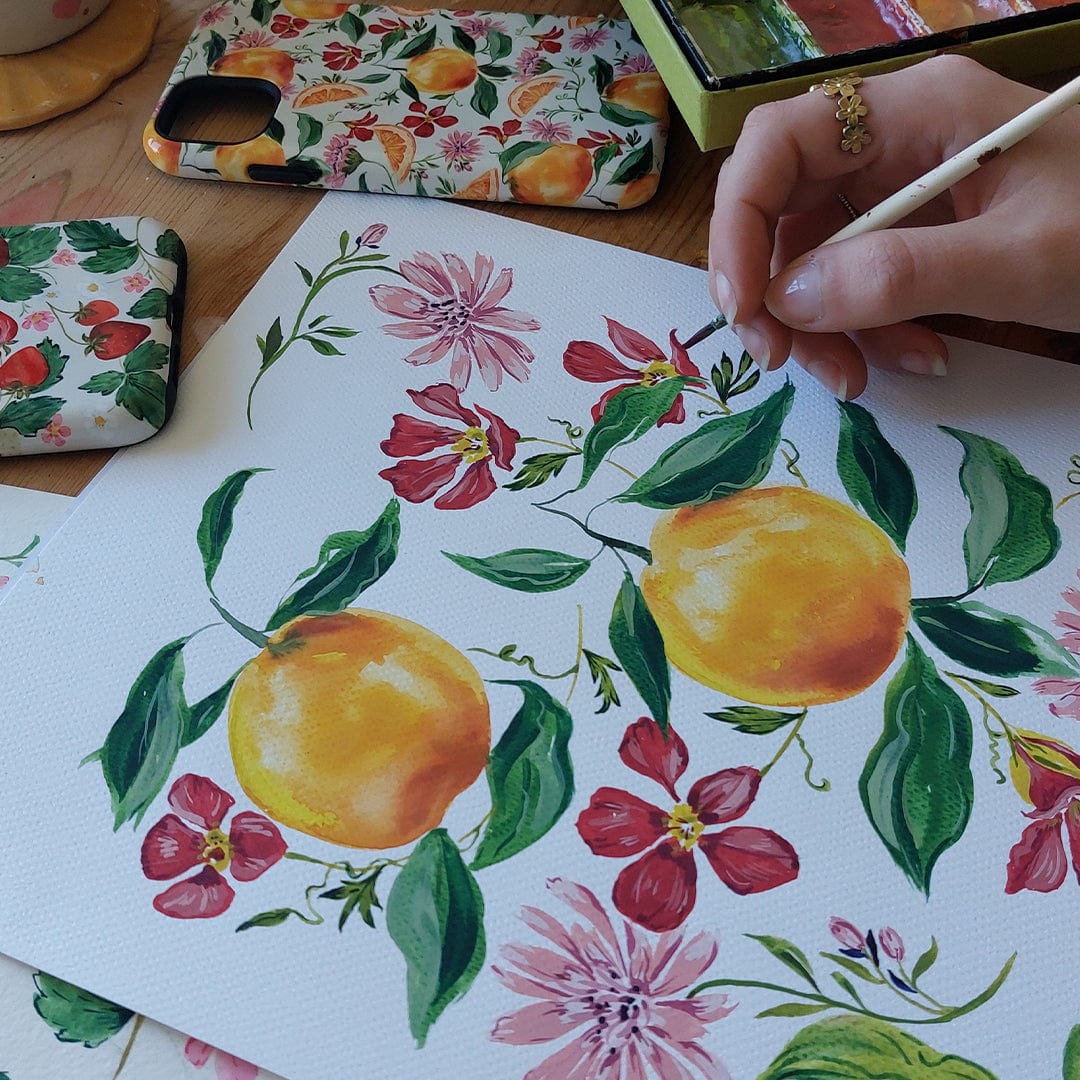 Add a fresh twist to your everyday with the Sweet Orange phone case, a hand-painted design by British artist Ellie Mae. Drawing inspiration from nature, flora, and life’s little joys, Ellie creates each of her timeless patterns in her charming countryside studio. Her vintage-inspired botanical fruit prints celebrate the beauty of the natural world with colour, texture, and heart.