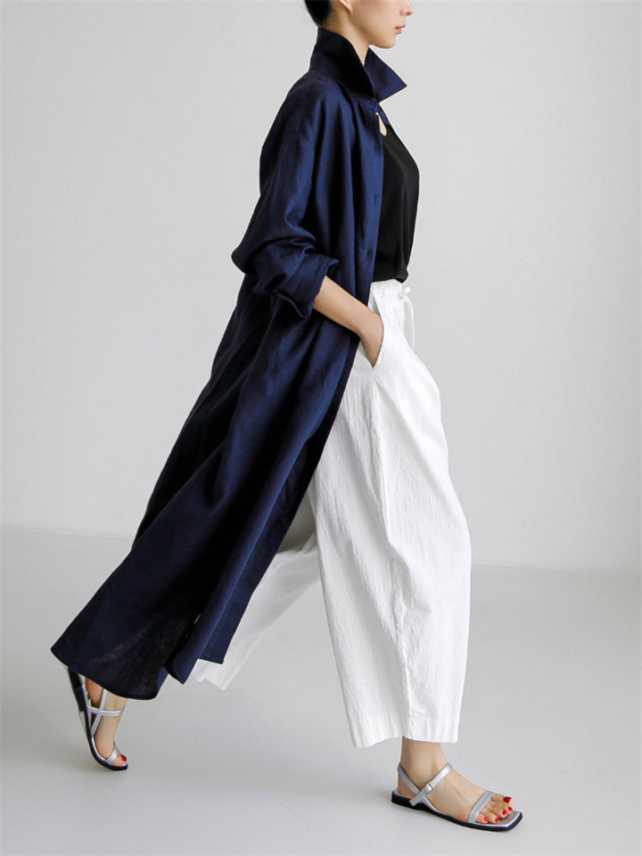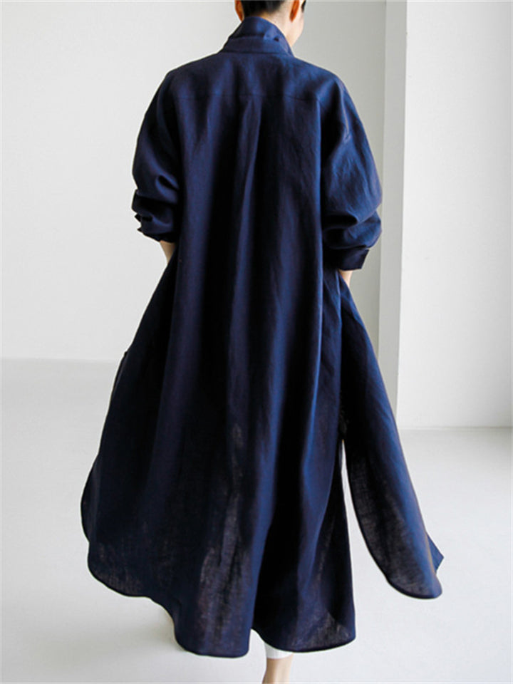 Women's Solid Color Casual Elegant Cotton And Linen Irregular Shirt Long Dress